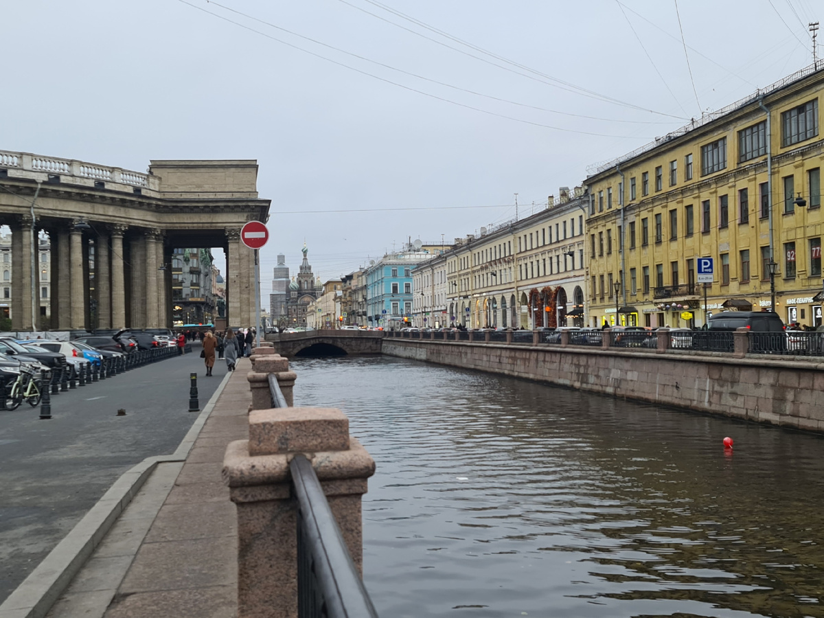 Набережная канала Грибоедова — одна из живописных набережных в центре Санкт-Петербурга, Россия. Ранее известный как Екатерининский канал, его назвали в честь русского писателя Александра Грибоедова. Она проходит вдоль канала, начинаясь от реки Мойки и заканчиваясь у реки Фонтанки. Эта набережная известна своими красивыми видами, архитектурными достопримечательностями и мостами. Спас на Крови (Храм Воскресения Христова) - один из них. Это самый известный символ Санкт-Петербурга, построенный на месте убийства императора Александра II. Он виден на фото вдалеке с двумя купалами.