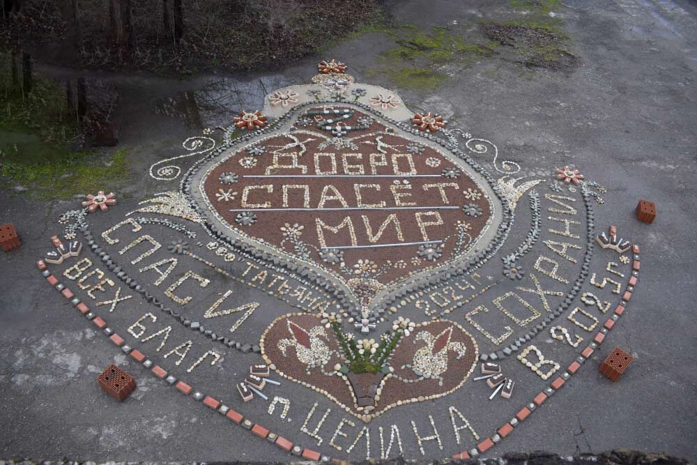 Галька и кирпич: житель Целинского района создал картину из камня