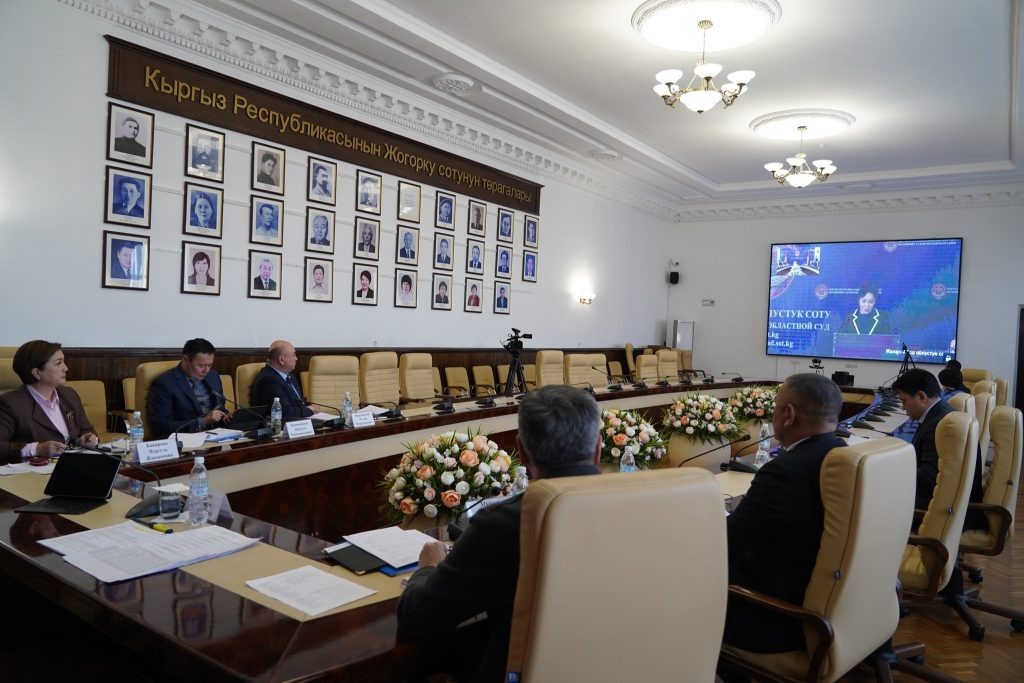 В Бишкеке прошло онлайн-совещание Верховного суда, на котором обсудили работу судов Джалал-Абадской области в 2024 году. Обсуждались увеличившиеся объемы дел, выявленные недостатки и меры по улучшению условий работы судов.