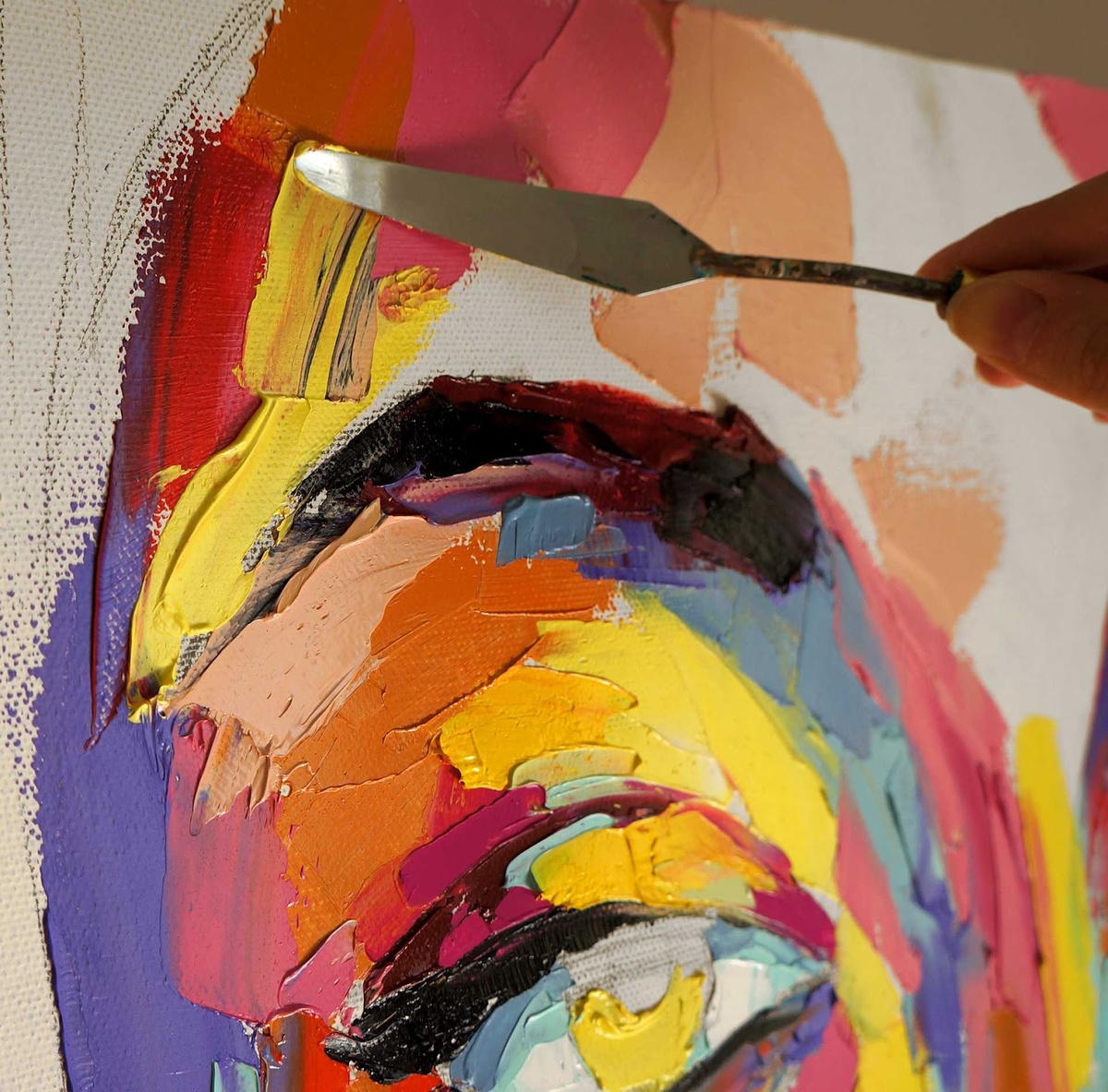 - Яркость и фактурность: Картины, созданные мастихином, отличаются объемными мазками и уникальной текстурой, которые невозможно повторить кистью.