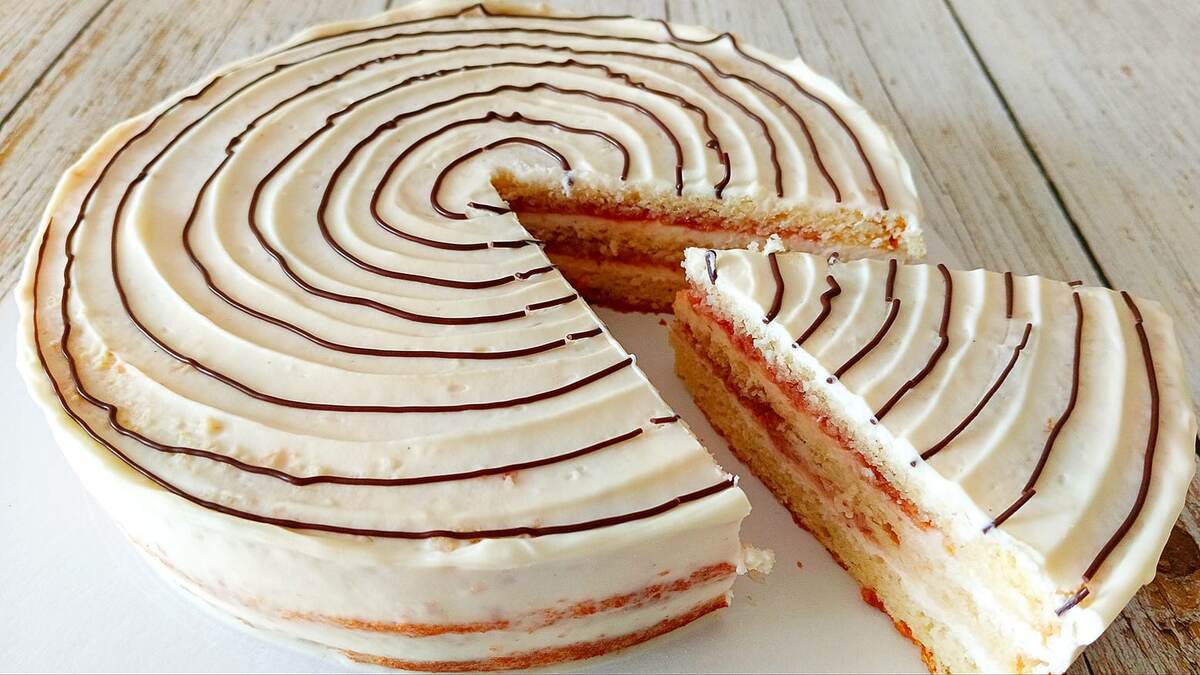 В конце делаю кремовую спираль волшебной палеткой по крему. Убираю торт в холодильник минимум на 8 часов.