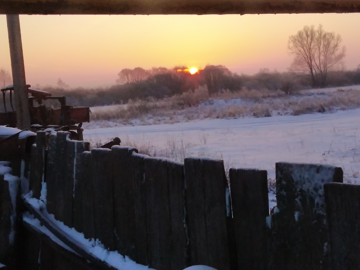 Утро радостное, морозное! Солнце - оранжевый шар.