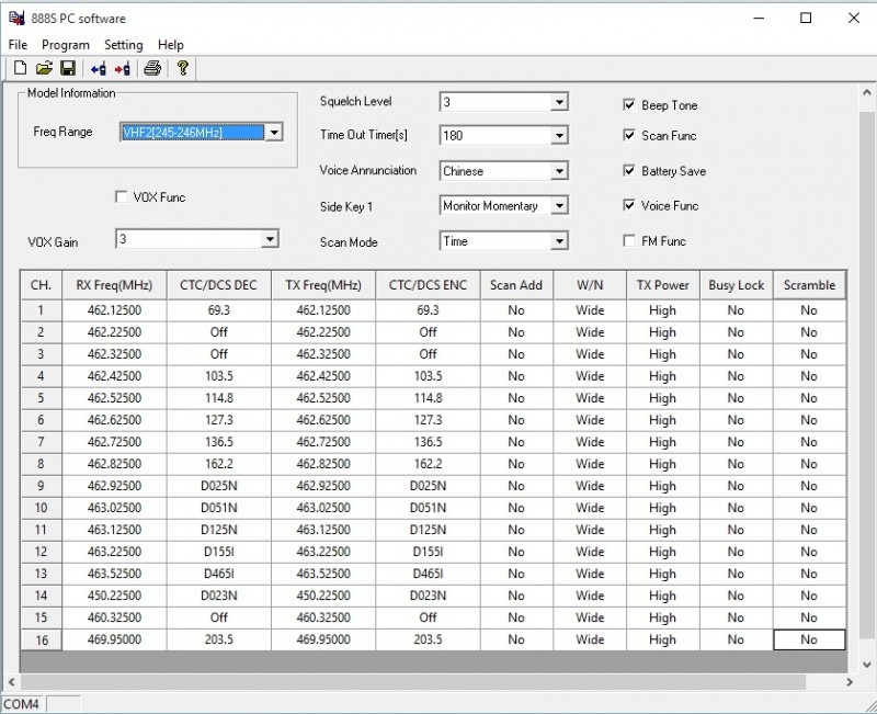 Радиостанция Baofeng BF 888S без экрана, имеющая 16 каналов, программируется с использованием компьютера. Я собрал информацию о частотах, на которых работают эти радиостанции, включая Baofeng BF77S и Baofeng BF 888S, которые функционируют на заводских заданных частотах. На фотографии ниже представлены частоты раций, установленные с завода. Например, на первом канале радиостанции Baofeng 888 частота составляет 462,125 МГц, а её тоновый сигнал — 69,3 Гц. У данной радиостанции имеется 16 каналов, и каждый канал обладает своим уникальным тональным сигналом. Таким образом, знание частот для рации Baofeng 888S и частот каналов рации Baofeng BF 777S позволит вам эффективно использовать данные устройства в любых условиях. 📡✨