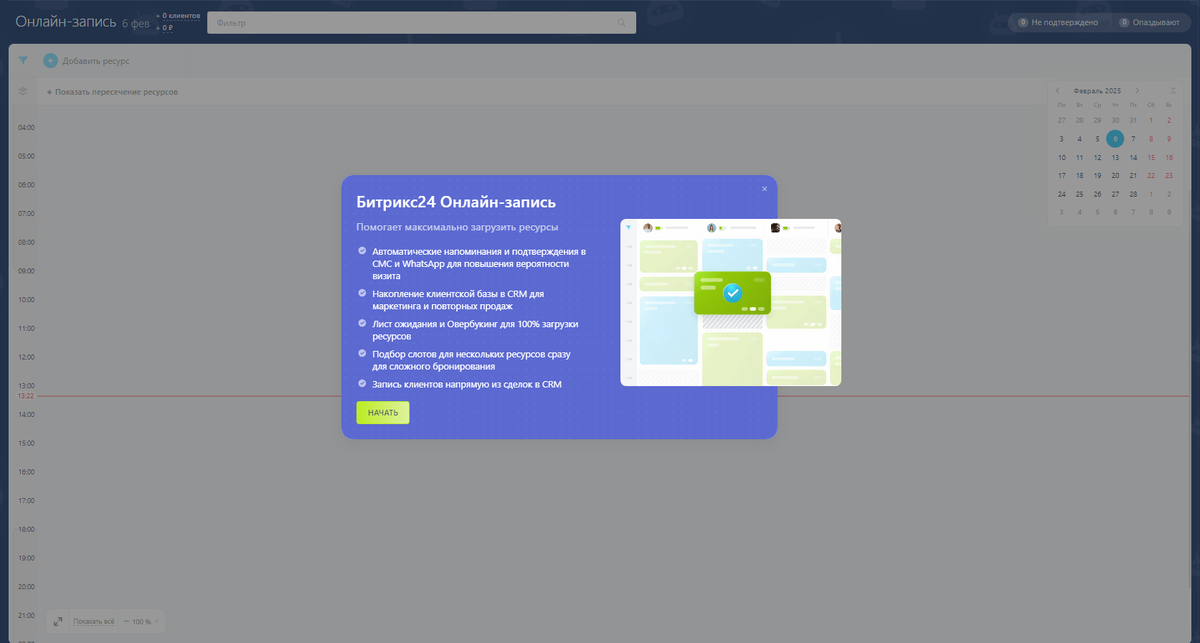 Этот новый функционал поможет вам упростить процесс бронирования. В одном месте вы сможете отслеживать все ресурсы, расписания и занятость сотрудников. Добавление новых записей стало еще проще, а контроль за загрузкой персонала — удобнее и точнее. Забудьте о двойных бронированиях и ошибках! Инструмент идеально подходит для различных сфер бизнеса: 🔹 Аренда недвижимости и транспортных средств 🔹 Доставка товаров 🔹 Консультационные услуги 🔹 Запись к врачу И это далеко не всё! Узнайте больше о том, как начать использовать онлайн-запись прямо сейчас. (Источник: https://helpdesk.bitrix24.ru/open/23712054)