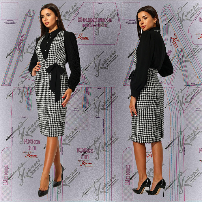 Очень простой фасон сарафана в прямой юбкой. Некоторые возразят, сказав, что юбка слегка заужена. Но, заужение очень незначительное, поэтому силуэт юбки будет выглядеть прямым. Для чего же оно необходимо? Его задача отклонить боковой шов от долевой нити, чтобы улучшить качество обработки бокового шва юбки из ткани с добавлением синтетических нитей. Карман - «отрезной бочок» с прямой линией входа в карман. Застёжка – по среднему шву ЗП. Костюмные ткани – самый очевидный выбор. Тонкая «костюмка» - для лета и тёплая – холодных времён года. Обратите внимание эко кожу для сарафана, который будет носиться в межсезонье и на лоден для зимнего изделия. Джинсовая ткань и габардин – также хороший выбор. Лён? Да, годится, если он достаточно плотный. Плотный трикотаж? Пойдёт! В общем, всё, что Вы выбрали бы на юбку, годится и для сарафана. Разумеется, по этой выкройке можно сшить и обычную юбку. Подкладочная ткань. Её выбор особенно важен для сарафанов из толстой и рыхлой ткани. Здесь важен тол