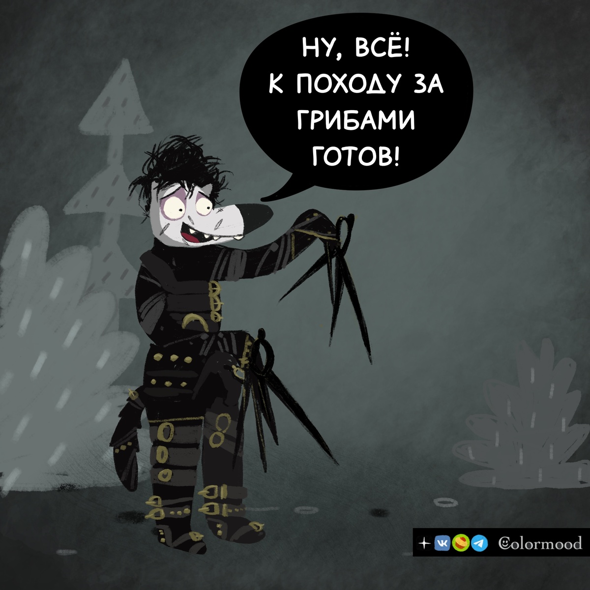 Купили Бедолаге тут новую экипировку для похода зв грибами, только ...кого-то он мне напоминает .... ваши варианты?) П.с. тем, кто видит первый раз - фантики с Волчком - это картинка с отсылкой к разным мультикам, кино, мемам, рекламе и т.д. , где Волчок изображается с его бесконечной любовью к грибочкам ) А подкинуть Волчку на грибочки можно сюда 5469400036435613. (Сбер автора)