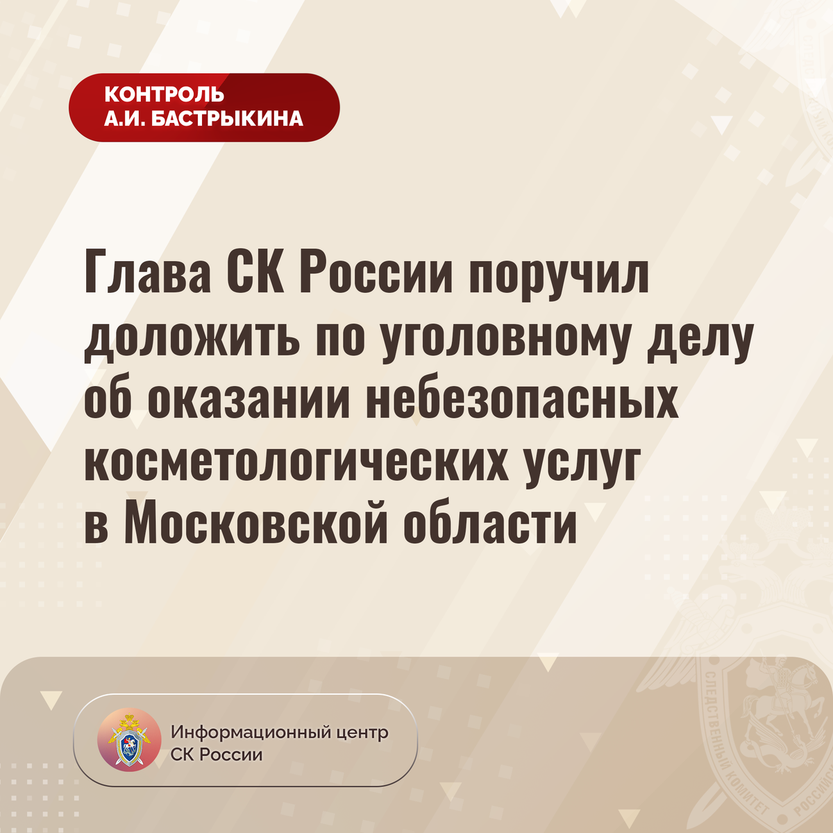 Глава СК России поручил доложить по уголовному делу об оказании небезопасных косметологических услуг в Московской области
