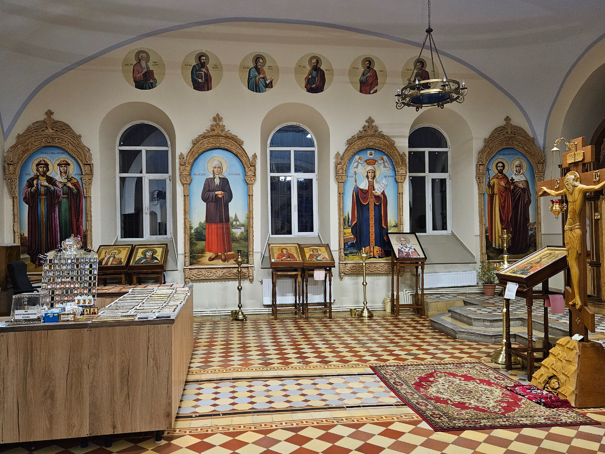 На фото среди прочих святынь икона Св. блж. Ксении Петербургской в храме Рождества Христова села Мокрый Корь Ясногорского района Тульской области.