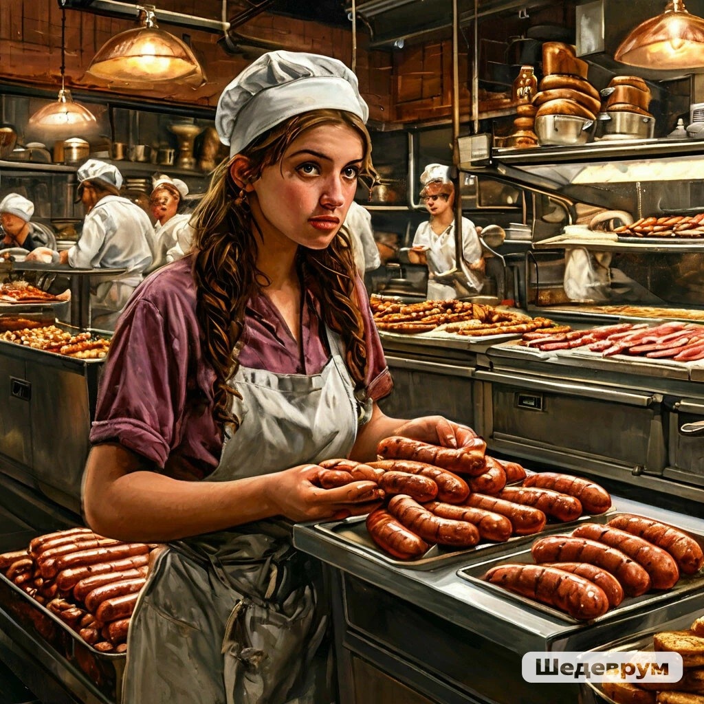 Намотав сосиски на кулак, схватив девчонку другой рукой, поволок ее в подсобку, усадив за стол, стал угрожать, радостно предвкушая (не то, что вы подумали, в те времена еще порно хба не было), а предвкушал он премию от начальства и пол-литра, которые он на нее купит. Он сунул ей поднос, лист А4, ручку шариковую и рядом положил вязанку сосисок, и сказал: «Пиши объяснительную, а я пошел за начальником смены, в те времена с телефонами было сложно, поэтому, чтоб кого-то найти, нужно было побегать, и кстати, поэтому полных людей было меньше, 🙂 закрыл подсобку на ключ и оставил расхитительницу наедине с собственной совестью, пустым листом, ручкой и сосисками.