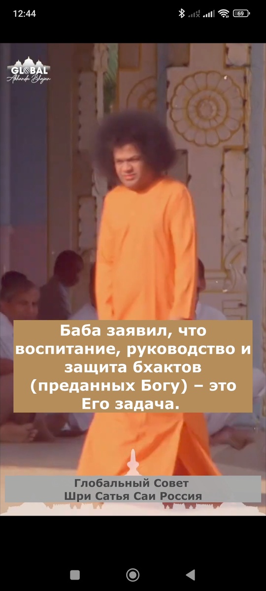 108 имён Шри Сатья Саи Бабы К 100-летию Бхагавана мы продолжаем воспевать 108 имён Шри Сатья Саи Бабы! 22. Ом Шрӣ Сāӣ Бхакта Ватсалāйа Намаха Баба заявил, что воспитание, руководство и защита бхактов (преданных Богу) – это Его задача. Бесчисленны случаи, когда Он спасал их от физического и духовного падения, оказывал своевременную и эффективную помощь, которую Oн считал наиболее полезной. Когда преданный искренне взывает о помощи, Баба, где бы Он ни находился, что бы Он ни делал, оставляет Своё тело и мчится на уровне Своего каузального тела в сторону попавшего в беду человека для его спасения. Или же Он дарует ему видение Своей формы, чтобы вселить в него мужество, утешить или исцелить. Он отпугивает воров, преступников и врагов. «Ватсальям» означает привязанность матери к ребёнку. Все мы – дети Сатья Саи Маты. Баба говорит: «Мать не будет откладывать свою помощь до тех пор, пока ребёнок не позовёт 108 или 1008 раз. Когда она поймет, что крик исходит из искренне