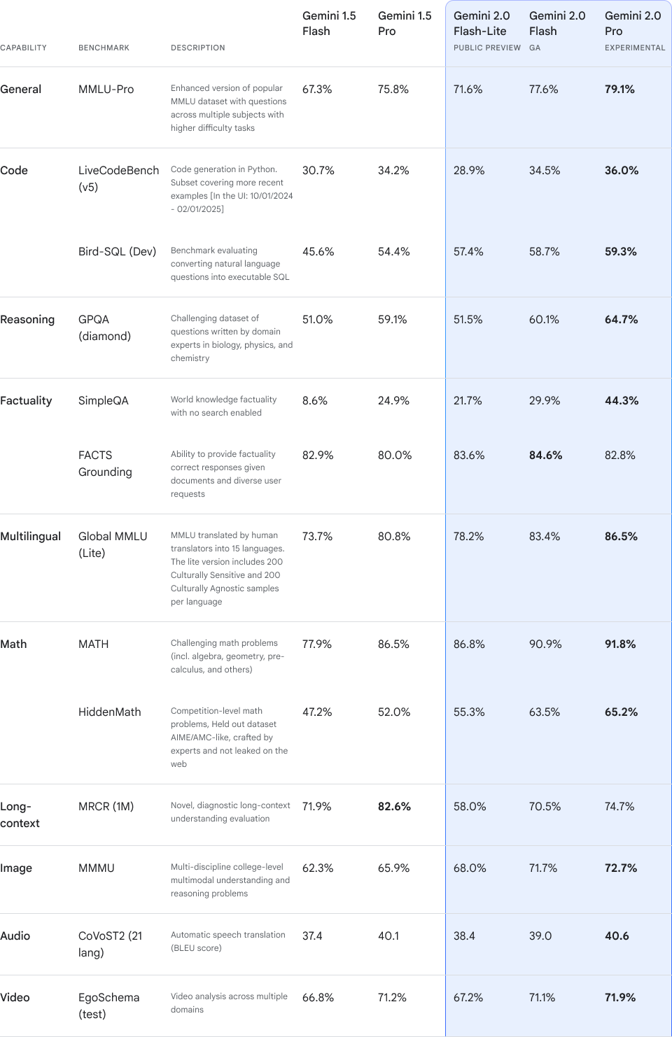 По мере того, как мы продолжали делиться ранними экспериментальными версиями Gemini 2.0, такими как Gemini-Exp-1206, мы получали отличные отзывы от разработчиков о его преимуществах и наиболее подходящих сценариях использования, например, для программирования.
