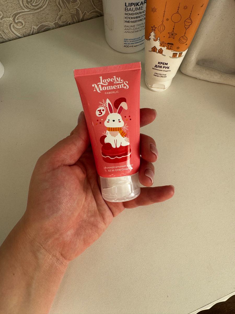 Линейка lovely moments - довольно шикарная находка для меня и моей семьи, мы довольно часто ее приобретаем. Гели для душа, крема для рук и тела, скрабы, гигиенические помады, много что, к слову, использует и моя дочь. Этот крем не стал исключением. Очень миниатюрная, но довольно эффективная и качественная новинка - универсальный крем all in one cream. Забегу вперед и скажу, что производитель предлагает использовать его даже для кожи лица, но я сама не рискнула, а вот для кожи рук он подошел на 10 из 10. Просто отличный вариант. Состав крема указан на обороте упаковки, в целом, как и другие данные. Не могу сказать, что все «ингредиенты» меня радуют, но за такую цену, с учетом того, что крем не вызывает никакой негативной реакции и вообще хорошо себя «показывает» при использовании - могу поставить ему 5 из 5. Текстура у крема довольно плотная, но при этом он отлично, просто потрясающе впитывается и хорошо ложиться на кожу, не жирнит и не слоится, при смывании не покрывает кожу пленкой.