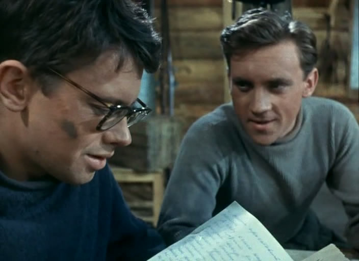 Дмитрия принимают на работу в бригаду. Опустим вопрос, как это можно было сделать во время отпуска за свой счёт, не уволившись с прошлого места работы. Знакомство с бригадой происходит буквально перед сном. Все бригадники если не силачи, то крепкие парни, а Дмитрий худой и в очках. Ни капли не удивлюсь, если окажется, что на роль Шурика Гайдай утвердил Демьяненко, увидев его в этой картине. Уж очень много моментов, где в Диме Горине узнаётся Шурик.