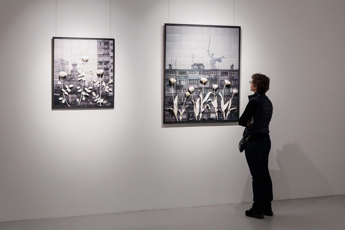 На фото - выставка в фонде Ruarts Анны Берч «Сажа бела». Ее можно посмотреть до 23 февраля. Название выставки взято из фольклорного выражения: «Как дела? — Как сажа бела». Фразеологизм передает понятие трудностей, однако в этом проекте служит метафорой двойственности. Выставка Анны Бёрч – исследование, где личные истории переплетены с историей страны. Выставка «Сажа бела» – аппликации о месте, где мы живем, как физически, так и духовно — нашей стране, доме, городе, которые являются, в некотором роде, нашим садом. В композициях перспективные линии фасадов плавно сливаются с краями плиток. Архитектура внутреннего пространства переплетается с внешним клетчатым каркасом. Третий слой, напоминающий занавес, образован дрейфующими стеблями фарфоровых цветов. Это странное взаимодействие «живого» элемента с жесткими гнетущими конструкциями вызывает ощущение иллюзии, где законы реальности кажутся приостановленными. Все работы - это керамическая плитка ручной работы, фарфор, фанера, УФ-печать. Фон