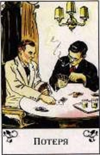 Карта Потеря это карта колоды, которая обозначает кража, потеря чего либо, неудача. Карта потеря в раскладе предупреждает о грядущей неудаче, о расставании с чем-то привычным. В какой сфере жизни это произойдёт, покажут другие карты. В ближайшее время стоит избегать любых рисков и не участвовать в сомнительных мероприятиях. Выгоды от этого не будет. Если вам кто-то должен деньги, постарайтесь как можно скорее получить долг обратно, иначе вы можете его не увидеть. Не стоит брать кредиты, будут проблемы с банком. Не нужно занимать у знакомых. В любой сфере жизни возможны ошибки, поэтому иногда лучше ничего не делать. Даже если вам кажется, что вы правы и ваши действия обоснованы, это не всегда так. Что-то пойдёт не по плану. Следите не только за своими действиями, но и за словами. Их могут понять неправильно или вы скажете лишнее, что приведёт к плохим последствиям. Будьте осторожны. В большинстве случаев потеря будет связана с имуществом или деньгами, но возможны и другие варианты, на