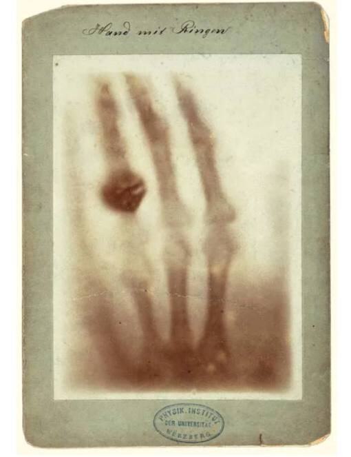 Многие великие открытия сделаны случайно. Это не обошло стороной и открытие рентгеновского излучения. В конце второго тысячелетия, а точнее 8 ноября 1895 года Вильге́льм Ко́нрад Рёнтген читал свою лекцию в университете, по окончании которой он решил задержаться после работы и. провести пару экспериментов с только что доставленной ему изобретенной вакуумной трубкой. Подключив её к высокому напряжению, он заметил, что. после прекращения подачи высокого напряжения пластина, покрытая солью бария, находившаяся в стороне продолжала светиться некоторое время зеленым светом. Заинтересовавшись этим явлением, он стал экспериментировать и выявил интересную закономерность. «Волшебные невидимые лучи» проникали сквозь все предметы кроме металлов и костей. Спеша поделиться своим. открытием, он сделал первый в истории рентген руки своей жене. Увидев снимок она сказала, что видела собственную смерть, ведь в то время скелет человека можно увидеть было только после его смерти. Великое открытие, не правда ли?