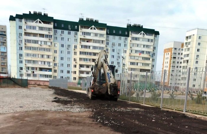 В Астрахани возле новой школы провели подсыпку дороги и пешеходных зон