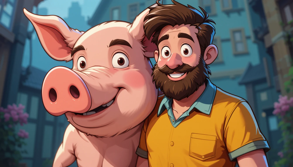 Переполох на базаре: приключения хитрого мужика и умной свиньи