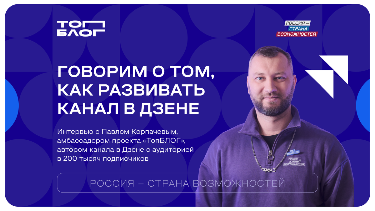 Сейчас существует множество различных площадок для ведения своего блога. Но в этом интервью мы затронем лишь одну. И речь пойдет о Дзене. Обсудим эффективное развитие канала на этой платформе вместе с Павлом Корпачевым — амбассадором проекта президентской платформы «Россия — страна возможностей» «ТопБЛОГ», профессиональным тренером, автором блога о здоровье, тренировках и питании.