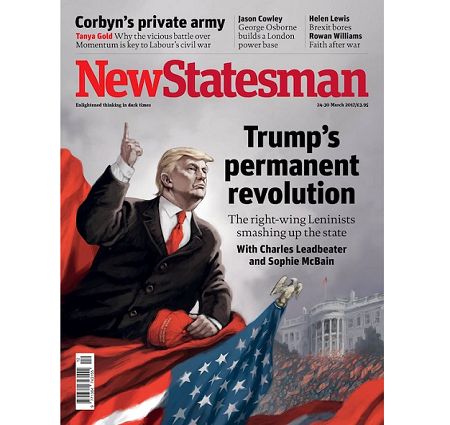 На сайте Политикус.ру привели картинки, изображающие Дональда Трампа до выборов и после выборов на обложках одного и того же журнала. Динамика изображений — от откровенного издевательства до более изощрённого: Дональд Трамп в образе Ленина. Приведём только две обложки New Statesman (Великобритания) для сравнения. Остальные можно посмотреть по ссылке. Источник. https://politikus.info/events/166372-obraz-trampa-v-levoy-presse.html Что тут говорить? Любят в бывшей великой Британии Дональда Трампа!