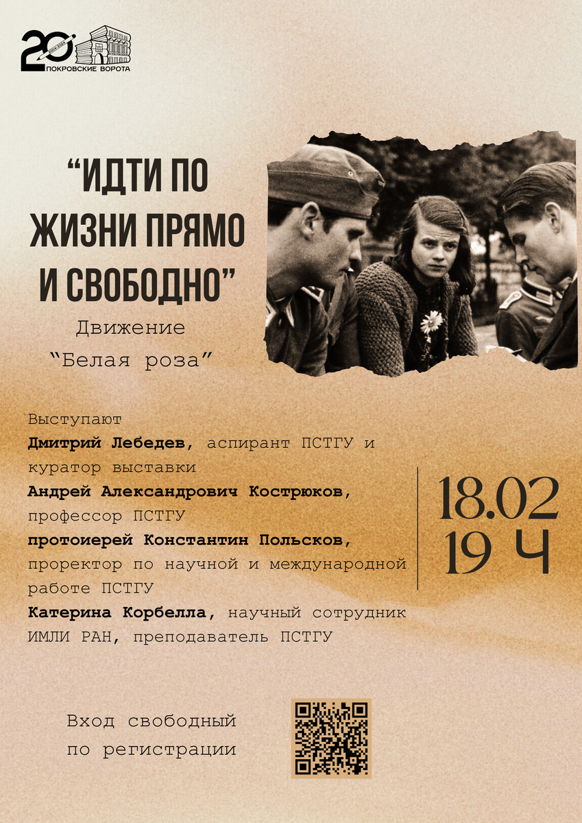 В рамках выставки «Белая роза: лица дружбы», 18 февраля в нашем культурном центре пройдет встреча, посвященная судьбам пятерых студентов и их преподавателя, которые сопротивлялись нацистскому режиму в Германии в 1942 г.