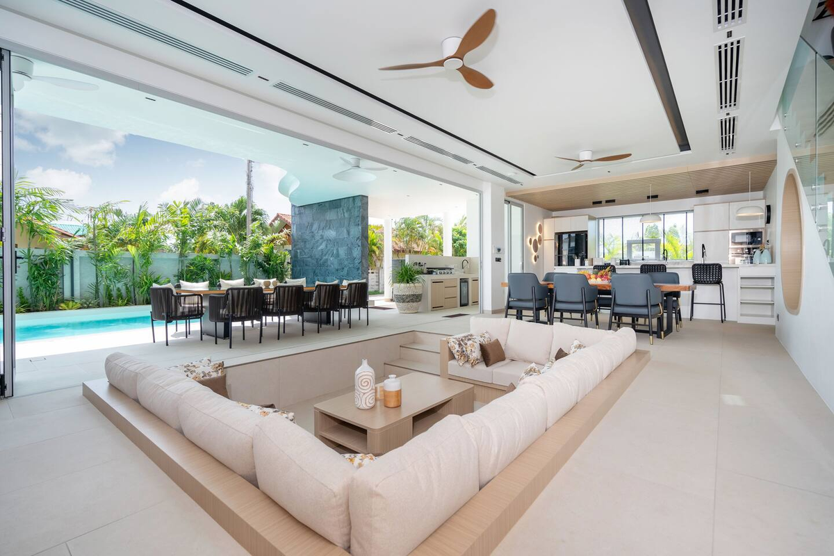 Villa Samata – это воплощение роскошного отдыха в одном из самых живописных уголков Пхукета. Просторная двухэтажная вилла с 5 спальнями и частным бассейном расположена всего в 5 минутах езды от пляжей Най Харн и Равай, предлагая идеальное сочетание уединения, комфорта и удобного доступа к лучшим развлечениям острова. Вилла выполнена в современном стиле с высокими потолками, панорамными окнами и элегантным интерьером, создавая атмосферу легкости и уюта. Просторная гостиная с уютным диваном и развлекательной системой выходит на террасу у бассейна, обеспечивая идеальное пространство для отдыха с семьей или друзьями. Полностью оборудованная кухня с премиальной техникой и просторной рабочей зоной делает приготовление блюд настоящим удовольствием. Каждая из пяти спален оформлена с изысканным вкусом и оснащена кроватью King Size, а из окон открывается вид на сад, создавая атмосферу приватности и гармонии. ✅ Все налоги и сервисные сборы