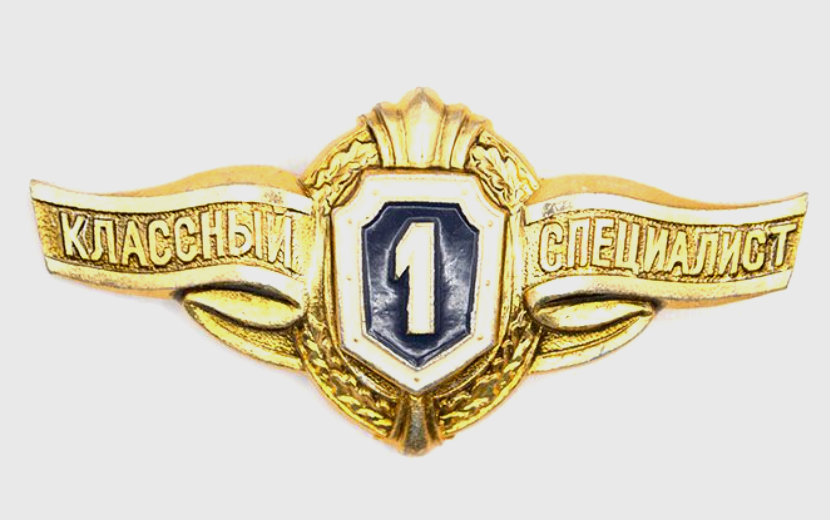 Значок "классный специалист". Звучит скромно. Интересно, а есть вариации - вроде "восхитительный работяга" или "шикарный трудяга".