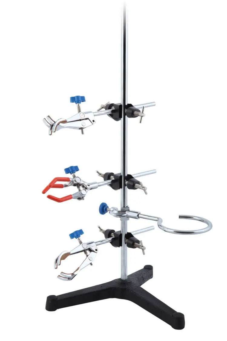 1. Штатив. Для чего: Установить и удерживать в неподвижном положении лабораторную посуду. Обычно бывает изготовлен из металла. Может быть укомплектован несколькими лапками.