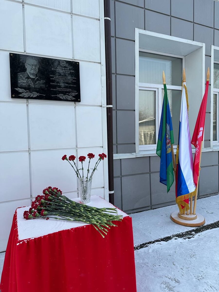 3 февраля в Иркутске прошло торжественное открытие мемориальной доски памяти директора филиала ФГП ВО ЖДТ России на Восточно-Сибирской железной дороге ШАХОВСКОГО ВЛАДИМИРА ВАЛЕРЬЕВИЧА, который скоропостижно ушел из жизни 24 декабря 2024 года. Мемориальную доску установили на фасаде здания управления филиала, в котором В.В. Шаховской на протяжении 15 лет возглавлял Восточно-Сибирское подразделение ведомственной охраны. Коллеги, работники предприятия, родные и близкие Владимира Валерьевича возложили цветы к мемориальной доске, почтили его память минутой молчания. В мероприятии приняли участие генеральный директор ФГП ВО ЖДТ России И.П. Челноков, председатель МОО-ОППО работников ФГП ВО ЖДТ России РОСПРОФЖЕЛ Н.Н. Несмашный, заместитель генерального директора Н.Ф. Долгих, представители администрации города и взаимодействующих организаций. В ходе памятной церемонии заместитель мэра Светлана Александровна Колотовкина передала сыну Владимира Валерьевича медаль ордена «За заслуги перед От