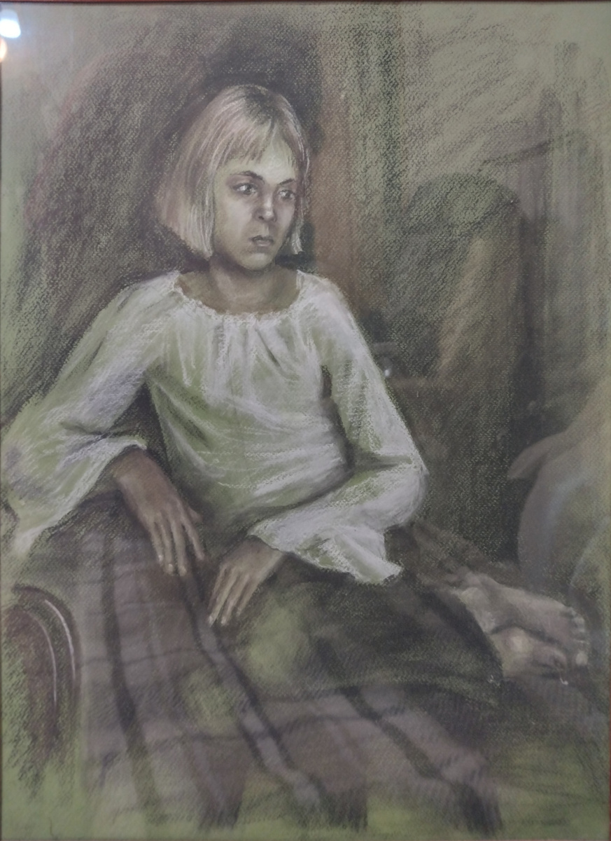Уже выставила несколько портретов младшей дочери. Теперь хочу показать портрет старшей. Картина выполнена на бумаге для пастели. Материал - соус. Это материал похожий на пастель. Я его очень люблю. Мне дорог этот портрет, потому что это портрет моей девочки.