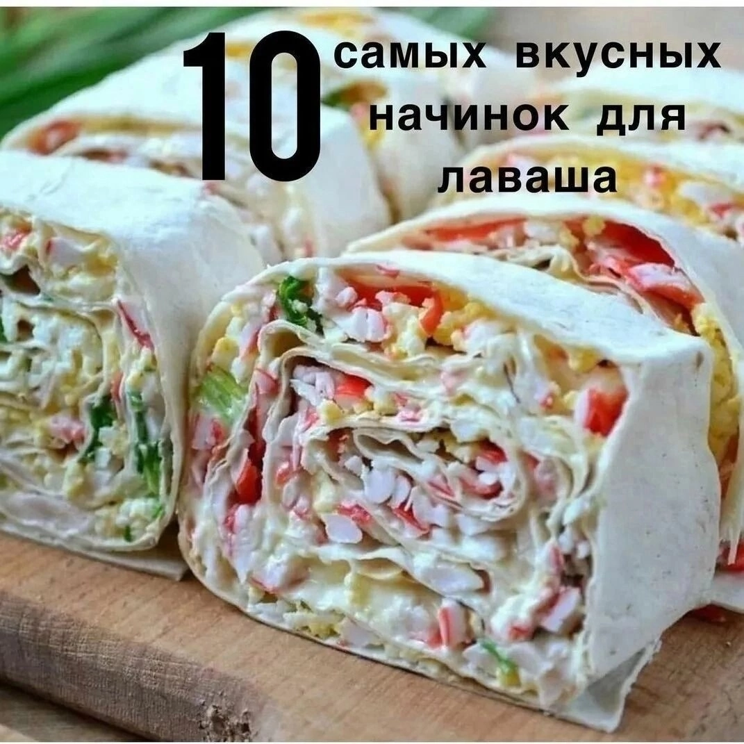 1️⃣ Крабовые палочки, чеснок, яйцо, тертый сыр, зелень и майонез. 2️⃣ Творог, соль, зелень, два зубчика чеснока и несколько ложек майонеза. 3️⃣ Жареные шампиньоны с луком, маринованные огурцы, зеленый лук и плавленый сыр, которым нужно смазать лаваш. Остальные ингредиенты выкладываем слоями. 4️⃣ Красная рыба, нарезанная кусочками, свежий огурец и зелень. Лаваш смазываем творожным сыром. 5️⃣ Морковь по-корейски, вареное яйцо, тертый плавленый сыр, майонез и укроп. 6️⃣ Рыбные консервы в масле размять вилкой, добавить яйцо и зеленый лук. Лаваш смазываем майонезом. 7️⃣ Адыгейский сыр раскрошить руками, добавить корейскую морковь. Лаваш смазываем майонезом с зеленью. 8️⃣ Тонко нарезанная ветчина и сыр, листья салата или огурец укладываются слоями, лаваш смазываем майонезом с чесноком. 9️⃣ Копченая курица, яйца натертые на терке, корейская морковь, укладываем слоями. Лаваш смазываем майонезом. 🔟 Копченая колбаса и сыр, нарезанные, сладкий перец тонкими слайсами, помидор полукольца