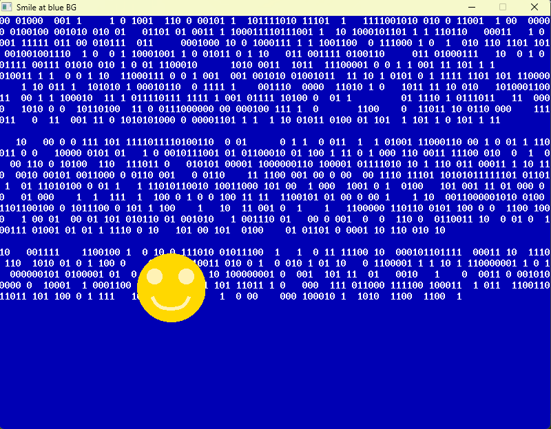 Тема, типа как ошибка программиста или улыбайся и программируй. Позитивная тема. Там, синий фон. И идут циферки. 0 и 1 в случайном виде на полный экран. Как будто, это, какой-то, двоичный код. Произвольный цифры. И, по ним бегает желтый круг с улыбкой и глазками. Веселая рожица. Под веселую музычку. Типа 8 бит. Или 16 бит или Мс Дос музычку из веселой аркадной игрушки. Как, может быть, было в Командир Кин или Космо Космик. Экран синий с нулями и единицами. Еще немного как Нортон Командер или Волков Командир. Программировать – это весело! Синий фон. И какая-то ошибка в коде. И, такая улыбочка. Я помню был апрель 2023 года. И была весна уже. Небо, становилось ярким и светлым. Снова, стало таким синим и радостным. И, после программирования, оказался как-то на улице. И посмотрел на небо. Удивился. И чуть там не увидел 0 и 1 и улыбочку сверху такую! Вот такая тема. Для позитива. Визуальная тема. Просто программка. В ней идет веселая ретро музычка. И смайл. И, случайно, показывается типа наб
