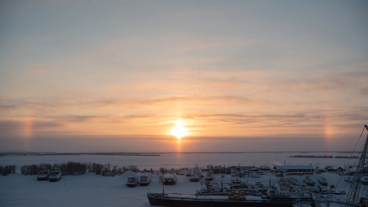 Гало вызывает разброс и преломление света в кристаллах льда. Фото: Андрей Ткачёв / «Ямал-Медиа»
