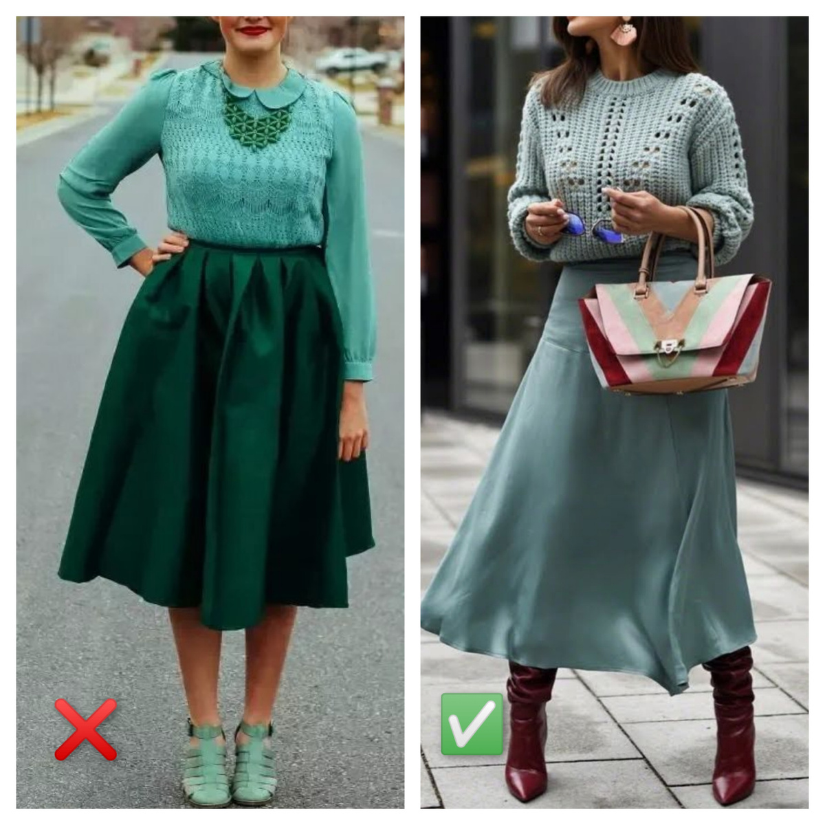 Даже женственные, классические и минималистичные образы могут визуально добавить возраст и вес, если не учитывать важные нюансы при подборе одежды. В устаревших образах женственного стиля часто встречаются сложные фасоны, изобилие декоративных элементов и плотное облегание. Эти особенности вместе могут сделать образ старомодным и придать женщине чересчур зрелый вид. Современная женственность отличается большей сдержанностью. В наряде акцент делается на одну выразительную деталь, окруженную нейтральными вещами. Простота кроя, игра фактур и полуприлегающие силуэты формируют актуальный женский образ XXI века. Повторяем образ: ✔️Коричневая юбка за 1300₽ ✔️Джемпер за 1500₽ ✔️Ботильоны за 3300₽ ✔️Сумка за 1000₽ Хотя многие убеждены, что классика неподвластна времени, даже она подвержена модным трансформациям, пусть и менее заметным, чем в случае с фаст-фешном. Изменениям подвергаются не только фасоны, но и способы стилизации классических образов. Современные вещи выглядят актуально, све
