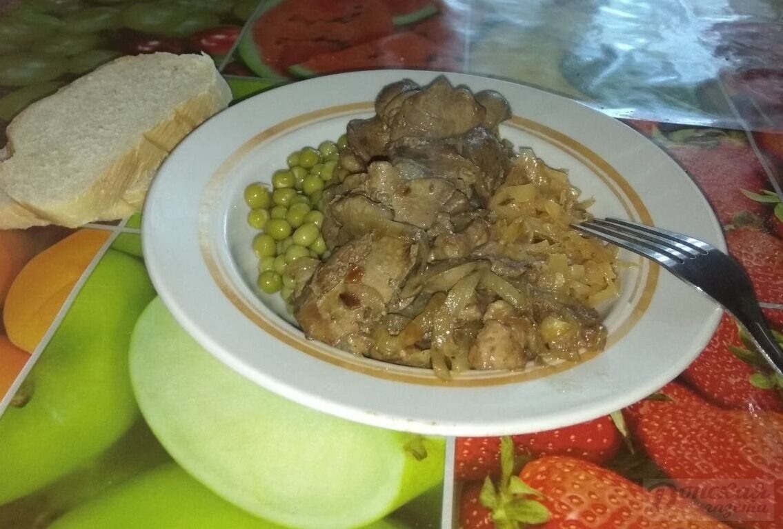 Рецепт в копилку читателя. Тушеная капуста с куриной печенью и зеленым горошком