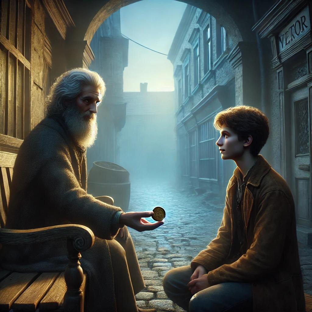На узких улочках старого городка, где каждый камень помнил шаги ушедших поколений, Виктор шагал в предвечерней дымке, когда сумерки начали размывать границы между днем и ночью. Теплое золото уходящего солнца смешивалось с мягким холодом наступающей ночи, и в этот момент ему казалось, что сама жизнь готова открыть ему свои тайны. В переулке у старой лавки он встретил седого старика, сидевшего на деревянной скамейке, с глазами, в которых отражалась мудрость многих лет. — «Виктор, — сказал старик, словно зная его имя, — каждое утро дарит нам шанс на обновление, даже если сумерки кажутся мрачными». Виктор остановился и прислушался к словам, чувствуя, как ветер, играющий с его волосами, несет отголоски давно забытых историй. — «Почему именно сегодня?» — тихо спросил он. — «Потому что именно в этом сумраке прошлое встречается с будущим, — ответил старик, протягивая ему пожелтевшую монету. — Эта монета – символ перемен. Неси её с собой и помни: каждый закат обещает рассвет». В этот момент из