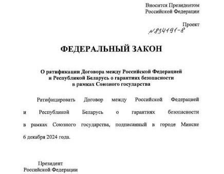 ‼️🇷🇺🇧🇾Россия применит ядерное оружие в ответ на применение против нее или Беларуси обычного оружия, "создающего угрозу суверенитету". ▪️Об этом говорится в договоре о гарантиях безопасности в рамках Союзного государства, который Путин внес на ратификацию. ▪️Также по нему нападение на одну страну будет рассматриваться как акт агрессии против Союзного государства в целом.