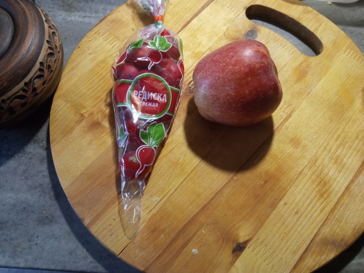 На днях писала, что составляю списки того, что хочу приготовить на очередной праздник: Решила сделать и этот салат, во время весеннего авитаминоза самое то. Ингредиенты: Редис — несколько штук (зависит от размера и количества едоков). Одна-два сладких яблока. Лимонный сок. 2 ст. ложки оливкового масла Как готовить: Редис натереть на средней терке, отжать от сока. Натереть на этой же терке сладкое яблоко. (Можно и в блендере, только не размешивать до пюре, оставить твердые кусочки). Смешать, чуть-чуть сбрызнуть лимонным соком и обязательно добавить 2 ст. ложки оливкового масла. Соль по вкусу. Казалось бы, ничто этого не предвещает, но у салата действительно есть легкий привкус земляники. Правда, не всегда, видимо, это зависит от свежести редиса и яблок. Но в любом случае, салат вкусный, состоит из сплошных витаминов и делать его просто. Я его сделала сегодня и сверху еще посыпала замороженной красной смородиной - так еще больше витаминов. :) Конечно, зимой редис не тот, но такой