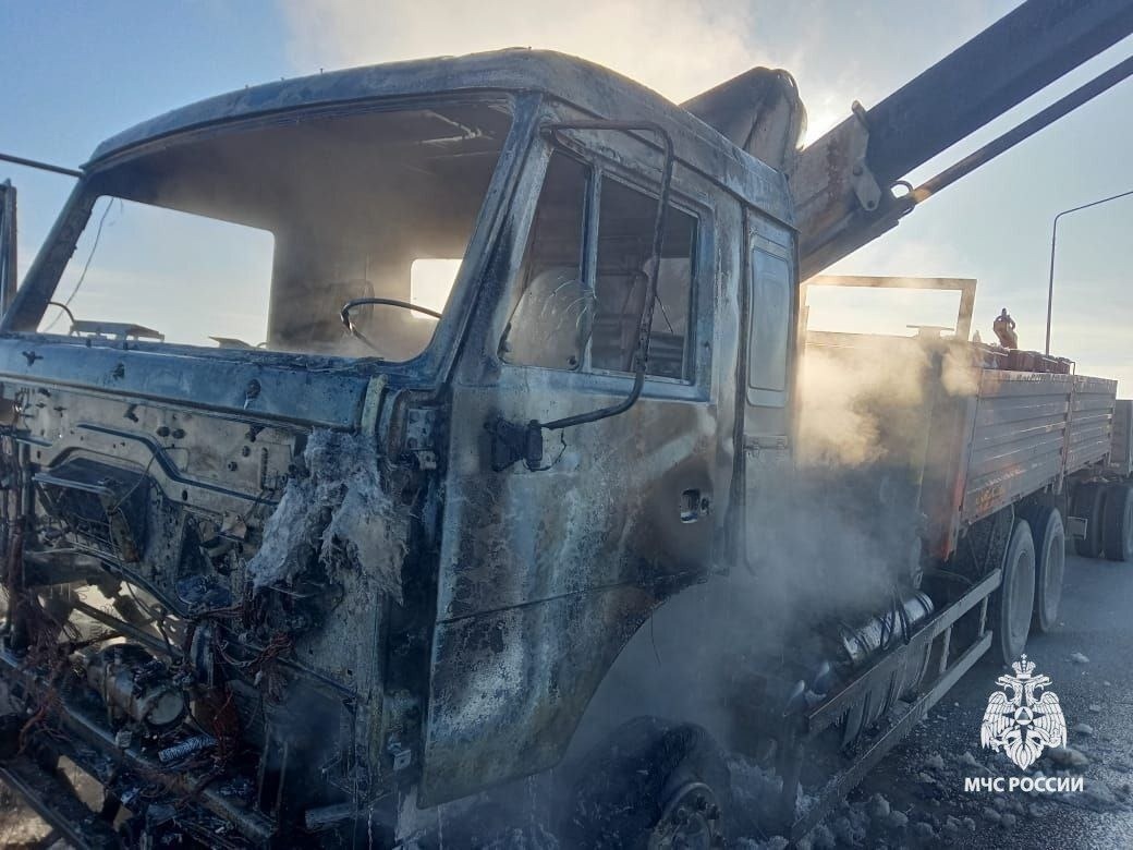 В Кармаскалинском районе Башкирии на 53-м километре трассы Р-240 сгорел КамАЗ. Об этом сообщило главное управление МЧС по республике. Сотрудники МЧС России совместно с добровольными пожарными оперативно ликвидировали открытое горение. К счастью, никто в огне не пострадал. Огонь успел повредить лишь кабину грузовой машины. Известно, что грузовик вёз кирпичи. В причинах произошедшего разбирается дознаватель МЧС России. МЧС России напоминает водителям о своевременном прохождении техосмотра, иметь в салоне огнетушитель и уметь им пользоваться; перед дорогой важно убедиться в исправности автомобиля. Любые повреждения в электропроводке, агрегатах и узлах могут привести к пожару и крупному материальному ущербу. Ранее «Башинформ» сообщал, что в Стерлитамаке сгорели два легковых автомобиля. Об этом и других криминальных случаях, произошедших в республике и за его пределами, читайте в рубрике «Происшествия».