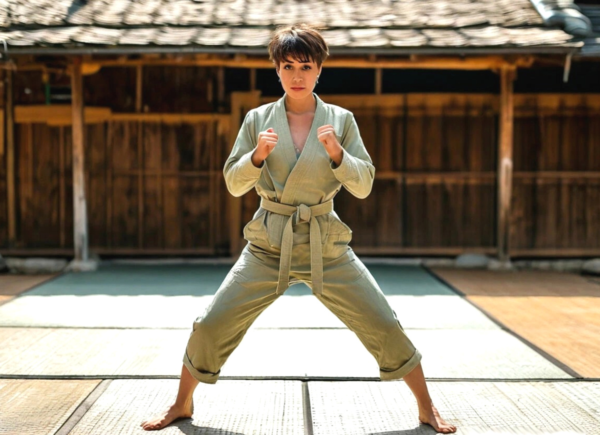 По её вискам текли капли пота, но она продолжала сжимать кулаки, готовая к новой атаке.