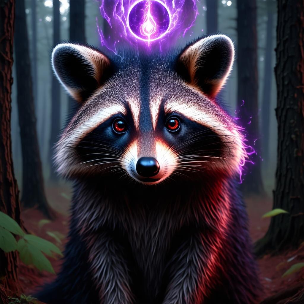 лениво вышел… призрачный енот. Он спокойно добрался до скатерти, делая