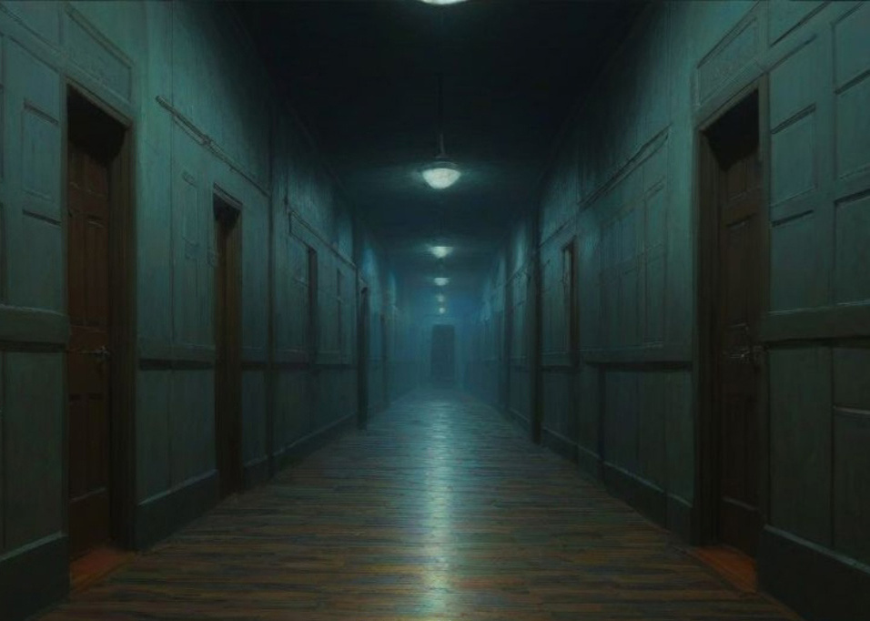 Эвелина на цыпочках кралась по тёмному коридору второго этажа. Тишина сдавливала голову. Прохладный ветерок касался пальцев ног. Эвелина отчаянно прислушивалась. Она была уверена, что кто-то идёт прямо за ней. Незаметно, словно густой влажный туман, надвигается со спины.
