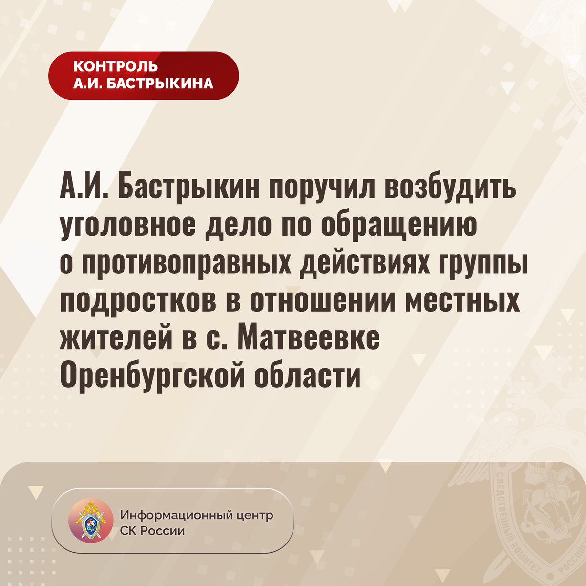 #СледственныйКомитет #СКРоссии #СКР #ИЦСКР #ИнформационныйЦентр #АлександрБастрыкин #ПредседательСКР #КонтрольПредседателяСКР #КомментарийКонтроль #ОренбургскаяОбласть