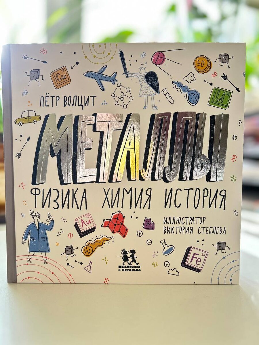 Знаете ли вы, что 85 из 118 элементов таблицы Менделеева — это металлы? И среди них есть такие, которые вас точно удивят. Например, кальций — тот самый, что делает наши кости крепкими, — тоже металл! Да-да, тот самый «строительный материал» нашего организма, который мы привыкли видеть в молоке и витаминах, на самом деле относится к металлам. Звучит неожиданно, правда? Но это только начало увлекательного путешествия в мир металлов, где привычные вещи открываются с совершенно новой стороны. Готовы узнать больше? Тогда давайте копнём глубже! Вместе с книгой Металлы: физика, химия, история Петра Волцита. Иллюстратор Виктория Стеблева. 1. Самый легкий металл — Литий. Он настолько легкий, что может плавать на поверхности воды! Его используют в батарейках для телефонов и ноутбуков. 2. Жидкий металл — Ртуть. Это единственный металл, который остается жидким при комнатной температуре. Но будьте осторожны: она ядовита! 3. Самый прочный металл — Титан. Он очень прочный и при этом он легче стали, п