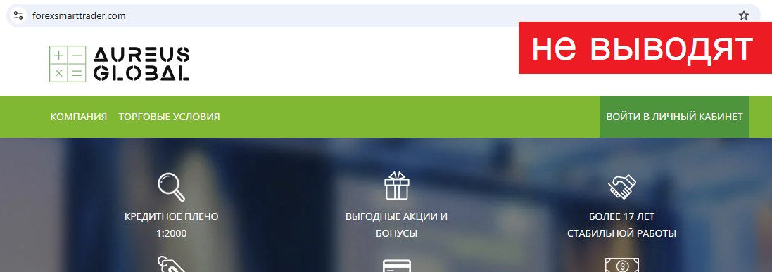 Forexsmarttrader.com, Forex smart trader (Cabinet.forexsmarttrader.com, Aureus Global): ЛИПА, лживая информация на сайте