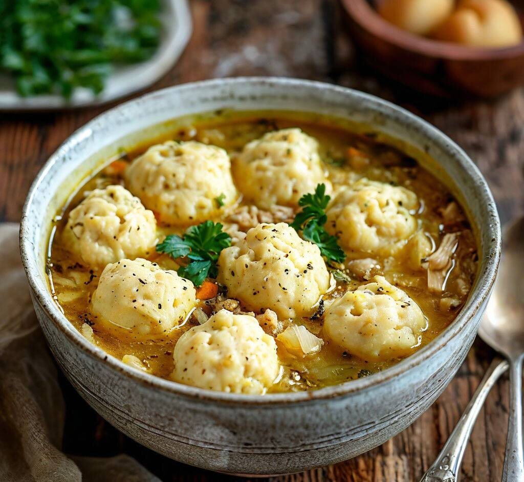 🔪Состав: - Куриные бедра - 2 шт. - Вода - 2 л. - Морковь - 1 шт. - Лук - 2 шт. - Картошка - 3 шт. - Раст. масло - 1 ст. л. - Соль, перец - по вкусу - Мука - 80 г. - Яйцо - 2 шт. - Зелень - по вкусу 📙Рецепт: 1. Курицу залейте холодной водой и доведите до кипения. Добавьте очищенные морковку и лук целиком и перец. Варите на умеренном огне примерно полчаса. 2. Картофель и сырую морковь нарежьте небольшими кусочками. Вторую луковицу измельчите. 3. Выложите птицу на тарелку, бульон процедите и вновь вскипятите. Добавьте картошку и морковь, варите 15 минут. 4. Тем временем разогрейте в сковороде масло. За 3–5 минут обжарьте лук. 5. Положите его в суп вместе с курицей, подсолите и проварите 5 минут. 6. Просеянную муку соедините с половиной чайной ложки соли. Добавьте яйца и хорошо перемешайте, чтобы не осталось комков. 7. Получившееся тесто выложите в суп с помощью ложки, формируя клёцки. Перемешайте и варите под крышкой на умеренном огне.
