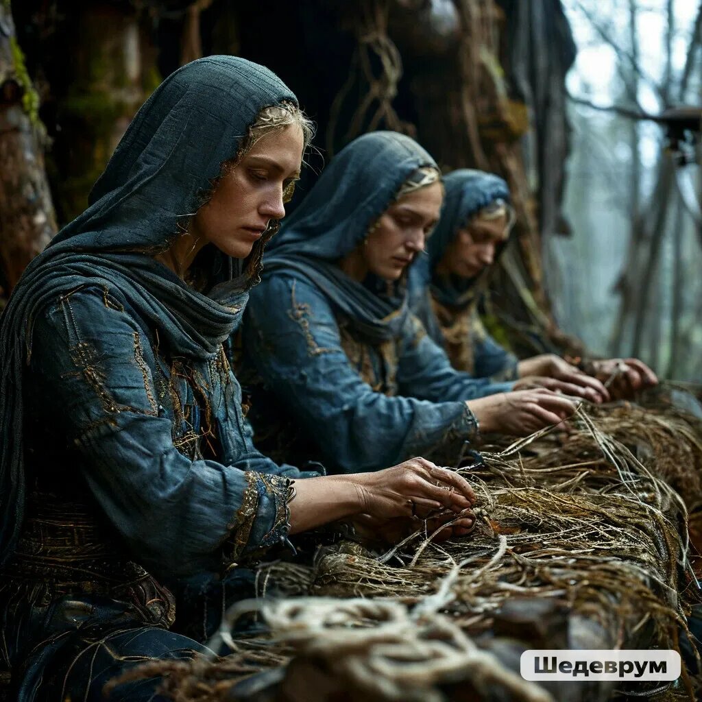 Три богини судьбы, три сестры в скандинавской мифологии выполняют несколько ключевых функций, связанных с судьбой и временем. Они являются важными фигурами, олицетворяющими судьбоносные силы, и их действия оказывают значительное влияние на жизнь людей и богов. Урд символизирует судьбу или прошлое — самая старая из сестер. Она отвечает за то, что уже произошло в жизни человека и изображается как дряхлая старуха с опущенными плечами, которая всегда оглядывается назад, на то, что было. В некоторых источниках она представляется как колдунья, погруженная в свои мысли о прошлом. Верданди — настоящее или становление — средняя сестра, в ее ведении текущие действия и выборы, выглядит зрелой и сильной. Она символизирует активное участие в жизни и процессе становления судьбы. Ее образ может быть более энергичным и динамичным по сравнению с Урд. Верданди олицетворяет момент здесь и сейчас, а также то, как каждое действие влияет на судьбу. Скульд — будущее или должное — самая молодая из сестер пред