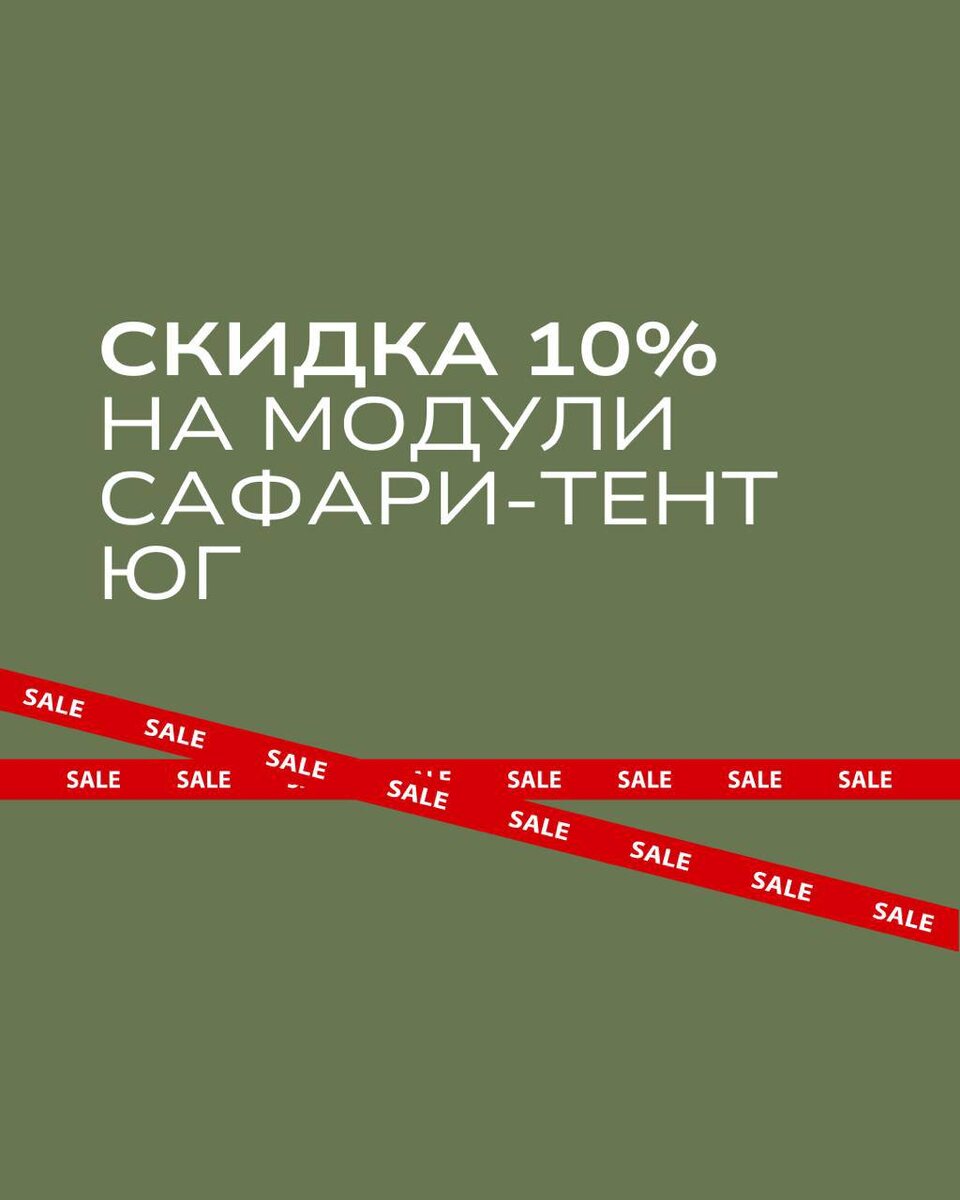 Уникальное предложение! 10% скидки на сафари-тенты, которые идеально подойдут для создания комфортных и стильных палаточных комплексов. Поднимите уровень вашего глэмпинга с нашими тентами — они обеспечат вашим гостям уют и атмосферу роскоши на природе. Акция действует на модули из наличия: - Сафари-тент XL каркас 8*4, палатка 6*4; - Сафари-тент М1 каркас 6*4, палатка 6*4; - Сафари-тент с классом горючести Г-1 каркас 6*4, палатка 6*4 (модификация подходит для детских лагерей). Почему стоит выбрать наши сафари-тенты? - Простор и элегантность: Наши тенты гармонично впишутся в любой ландшафт, предоставляя вашим гостям максимум комфорта. - Высокое качество: Надежные материалы обеспечат долговечность и безопасность использования. - Легкая установка и обслуживание: Быстро монтируются и просты в уходе, экономят ваше время и силы. Не упускайте шанс модернизировать ваш глэмпинг с выгодой! Воспользуйтесь предложением сейчас и создайте неповторимую атмосферу для своих гостей. Узнайте больше об усл