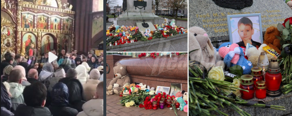 Церковь Архангела Михаила не смогла вместить всех пришедших. Люди стояли в проходах, на улице, в сотне метров от входа – на холоде, сжимая в руках цветы и плюшевые игрушки. Бабушки тихо крестились, матери крепче прижимали к себе детей, мужчины стояли с застывшими лицами, будто пытаясь сдержать что-то, что вот-вот прорвётся сквозь грудь.