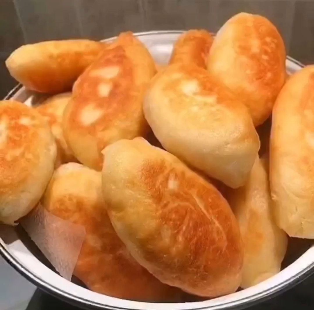🥣 Ингредиенты: - 0,5 литра кефира тёплого, - 1 ч. ложка соды, - 2 ч. ложки сахара, - 1 ч. ложка соли, - 3 стакана муки, - 3 ст. ложки растительного масла. 🍽 Как приготовить: Замесить тесто, поставить в холодильник на 1 час. Разделить тесто на шарики, раскатать или разлепить рукой на посыпанной мукой поверхности, в середину положить начинку, защипнуть, обжаривать на сковороде.